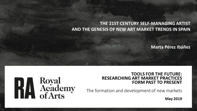La tercera edición del congreso Tools for the future: researching art market practices from past to present, que se ha celebrado en la Royal Academy of Arts y en la Kingston University School of Arts, Londres, los días 30 y 31 de Mayo, ha contado una vez más con nuestra participación. La ponencia presentada por Marta Pérez Ibáñez bajo el título de «El artista autogestor del siglo XXI y la génesis de nuevas tendencias en el mercado español del arte» desarrolla la investigación llevada a cabo durante los últimos meses, que ya fue previamente avanzada en el seminario PrekariArt de la Universidad del País Vasco en Bilbao. Nuevos modelos de negocio desarrollados tanto por galerías como por artistas que permiten a Pérez Ibáñez elaborar una taxonomía de tendencias innovadoras en nuestro mercado, y de alternativas a la crisis y al nuevo paradigma imperante.